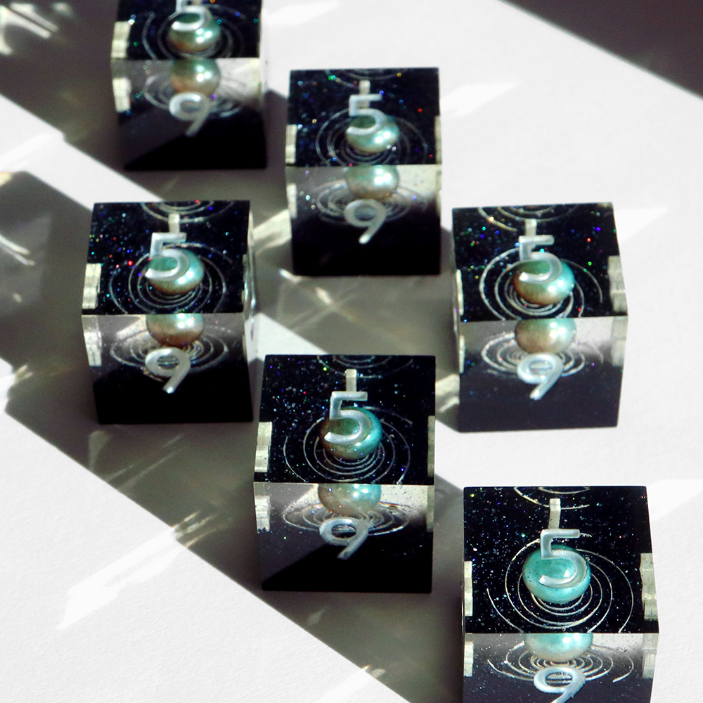 All sets sold by Everything Dice are handmade by our team of skilled resin artists, and quality-inspected to be visually perfect and suitable for casual play. Because of the handmade nature of our dice, each set will vary slightly in color proportions and gold flake placement.