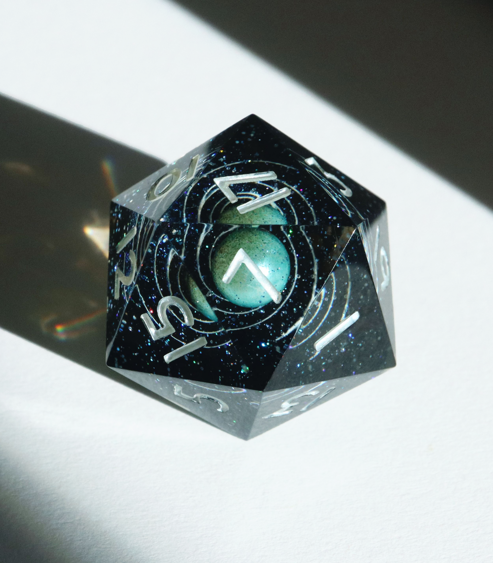 All sets sold by Everything Dice are handmade by our team of skilled resin artists, and quality-inspected to be visually perfect and suitable for casual play. Because of the handmade nature of our dice, each set will vary slightly in color proportions and inclusion placement.
