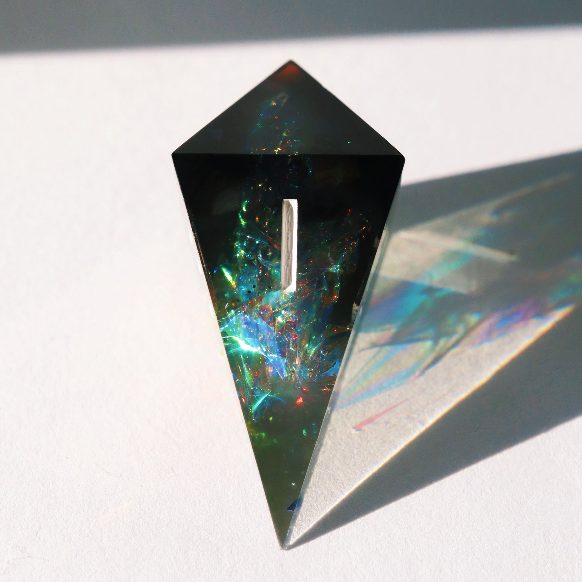 A clear and black set with foil inclusions that glitter in the void like galaxies. This listing is for ONE single Crystal D4.