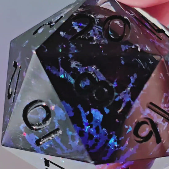 This is an oversized chonky 40mm d20, twice the size of a normal d20! The video shows the dice both in sunlight and standard room lighting.