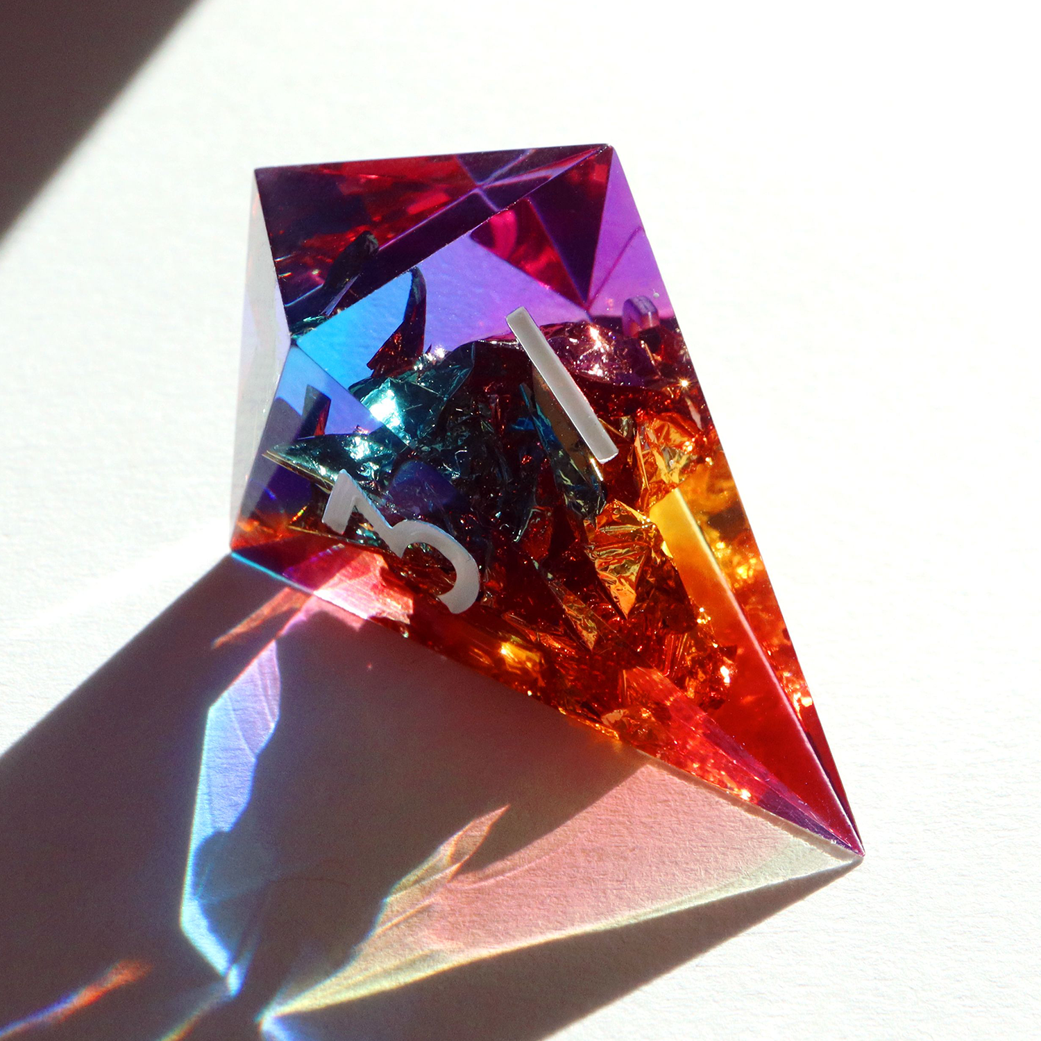 All sets sold by Everything Dice are handmade by our team of skilled resin artists, and quality-inspected to be visually perfect and suitable for casual play. Because of the handmade nature of our dice, each set will vary slightly in color proportions and inclusion placement.