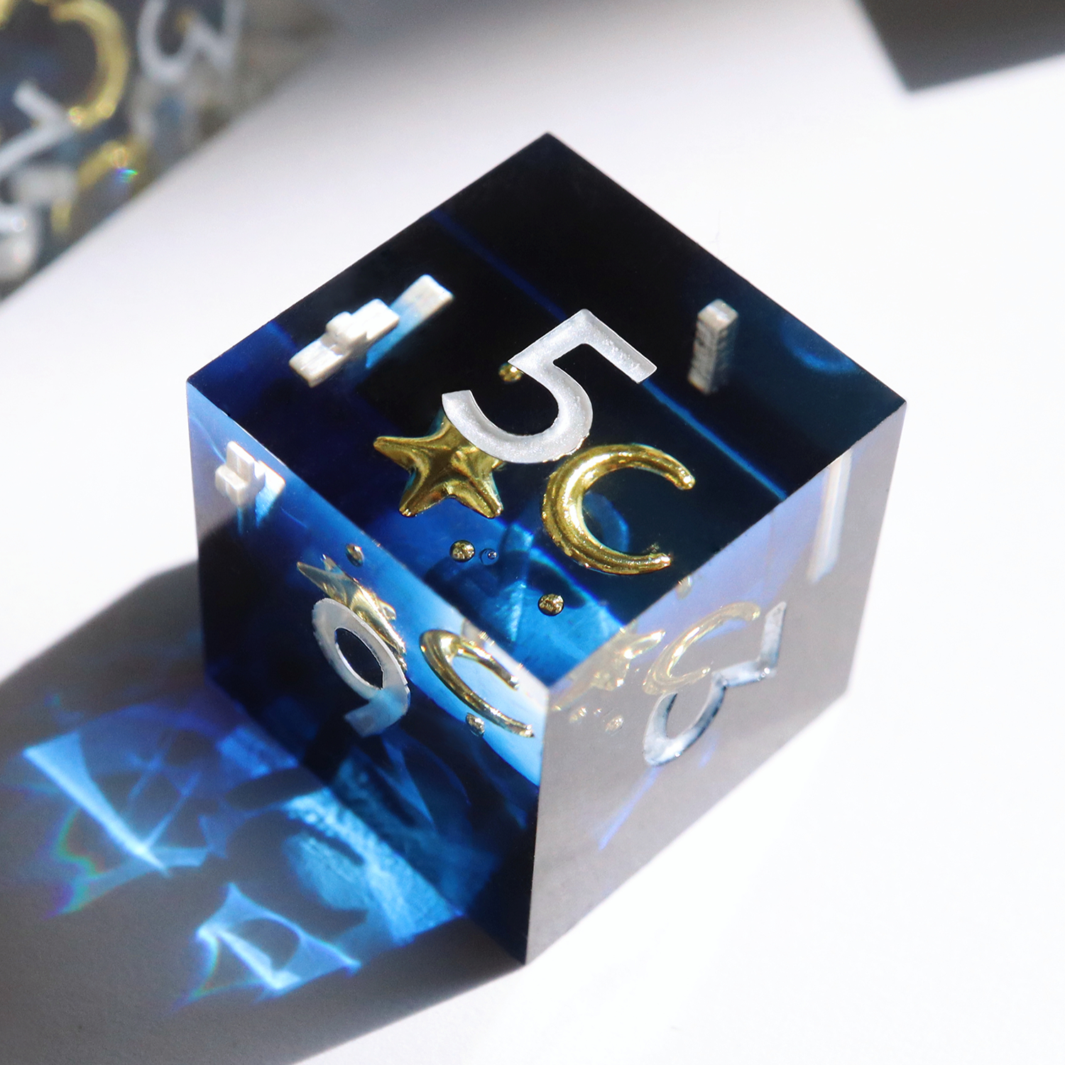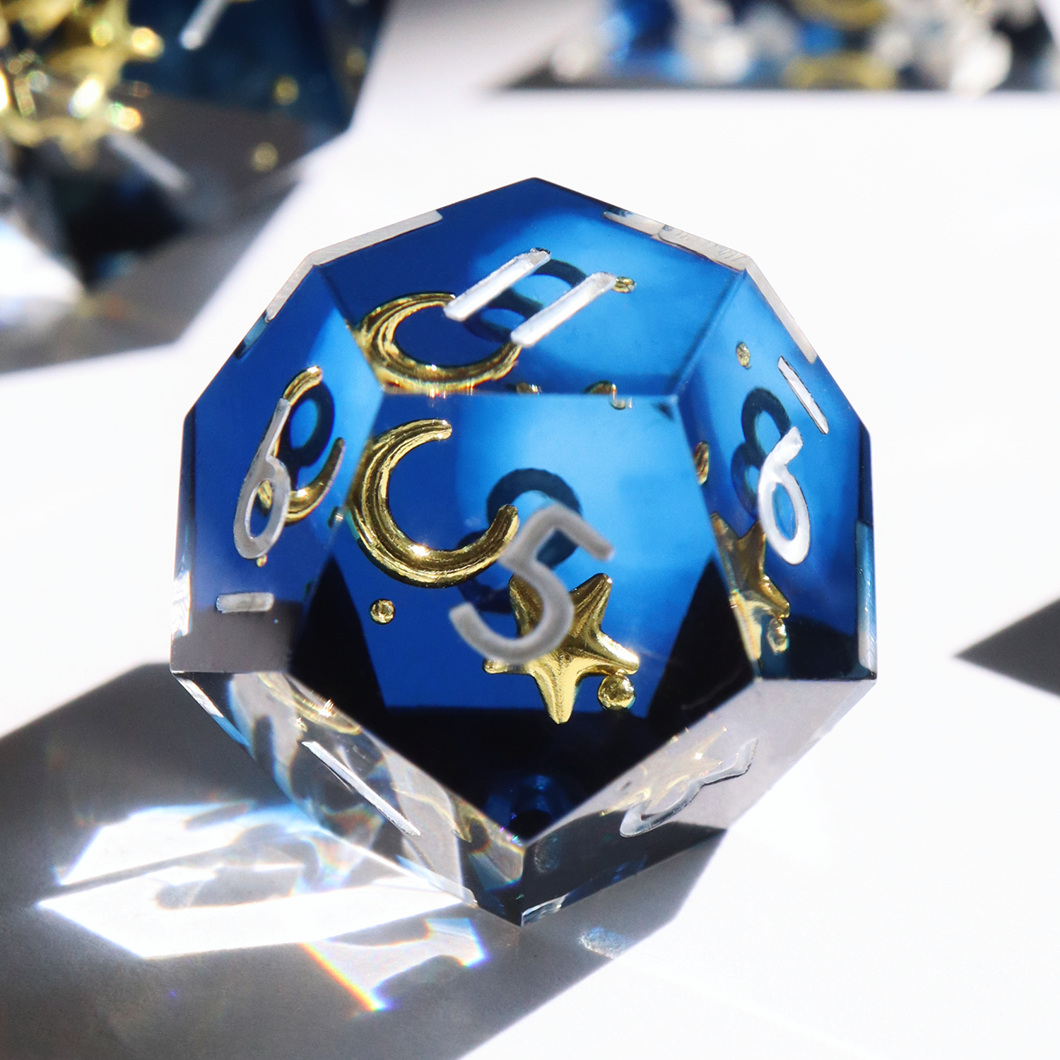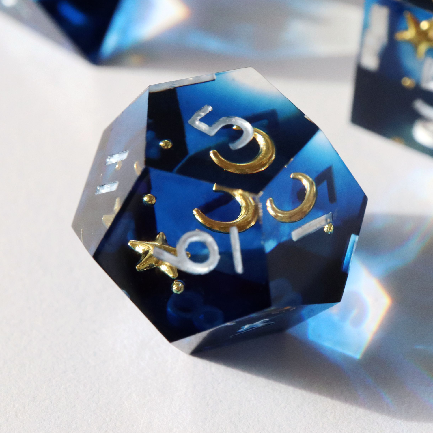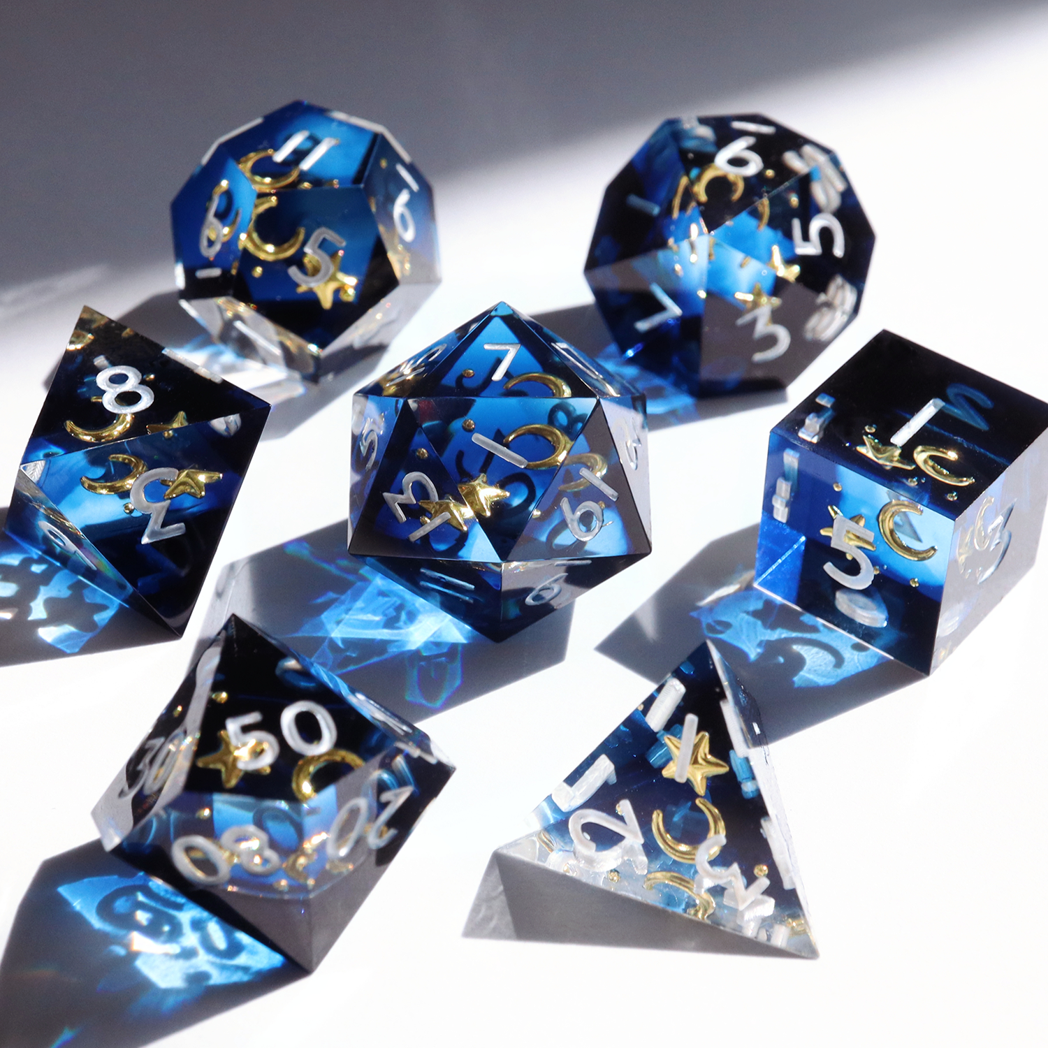 All sets sold by Everything Dice are handmade by our team of skilled resin artists, and quality-inspected to be visually perfect and suitable for casual play. Because of the handmade nature of our dice, each set will vary slightly in color proportions and inclusion placement.