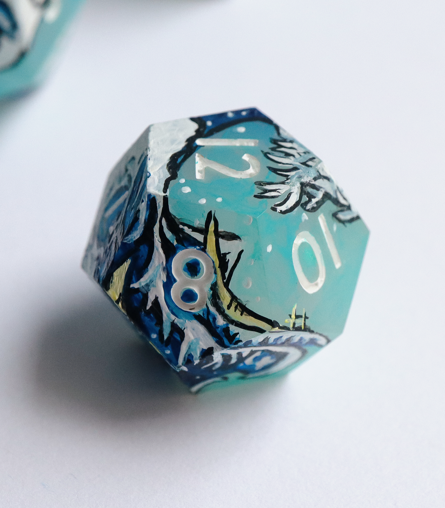 All sets sold by Everything Dice are handmade by our team of skilled resin artists, and quality-inspected to be visually perfect and suitable for casual play. Because of the handmade and handpainted nature of our dice, each set's artwork will vary slightly from the pictured set.