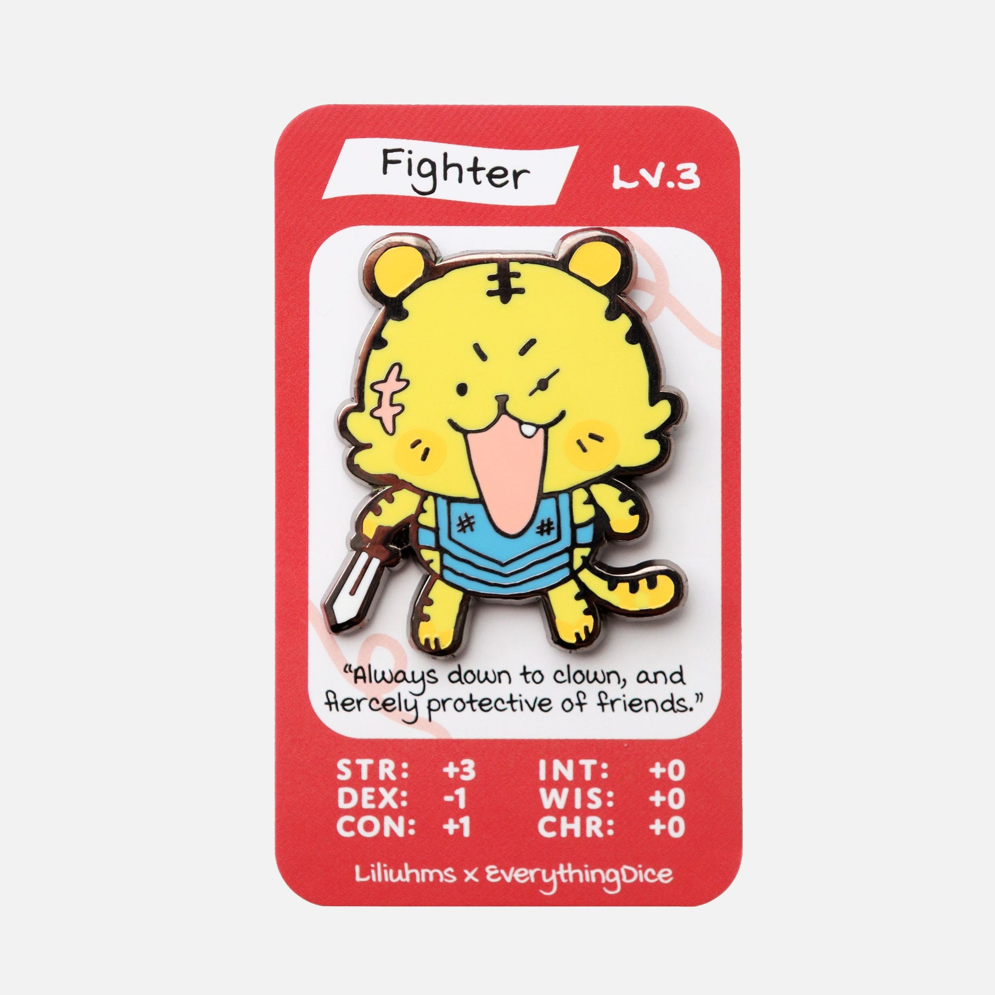 Rep your class with our fighter pin! This feisty little dude is made out of hard enamel and up to nooo good. Comes with a character class backing card.