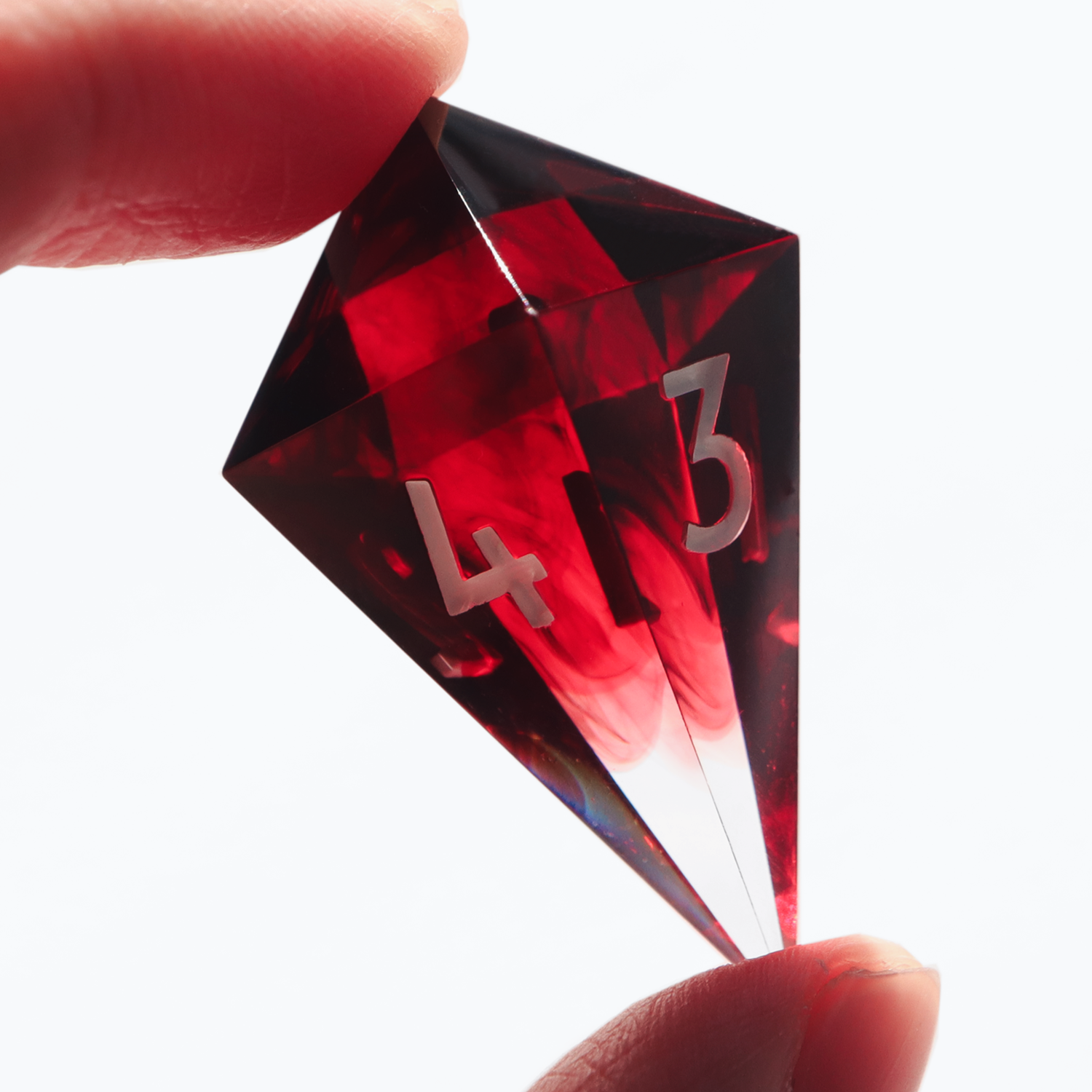 An ominous, bloody gradient of red encapsulated in clear dice. This listing is for ONE Single Crystal D4.