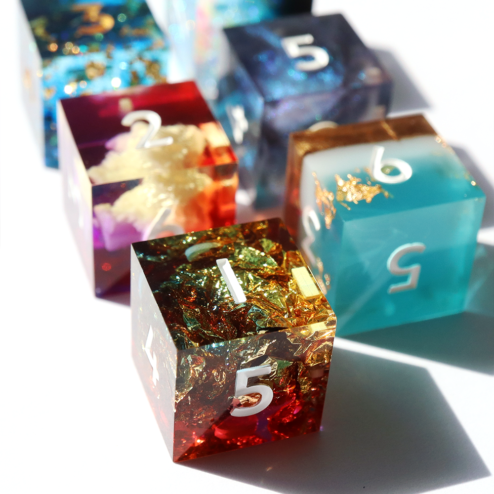 All sets sold by Everything Dice are handmade by our team of skilled resin artists, and quality-inspected to be visually perfect and suitable for casual play. Because of the handmade nature of our dice, each set will vary slightly in color proportions and copper foil placement.