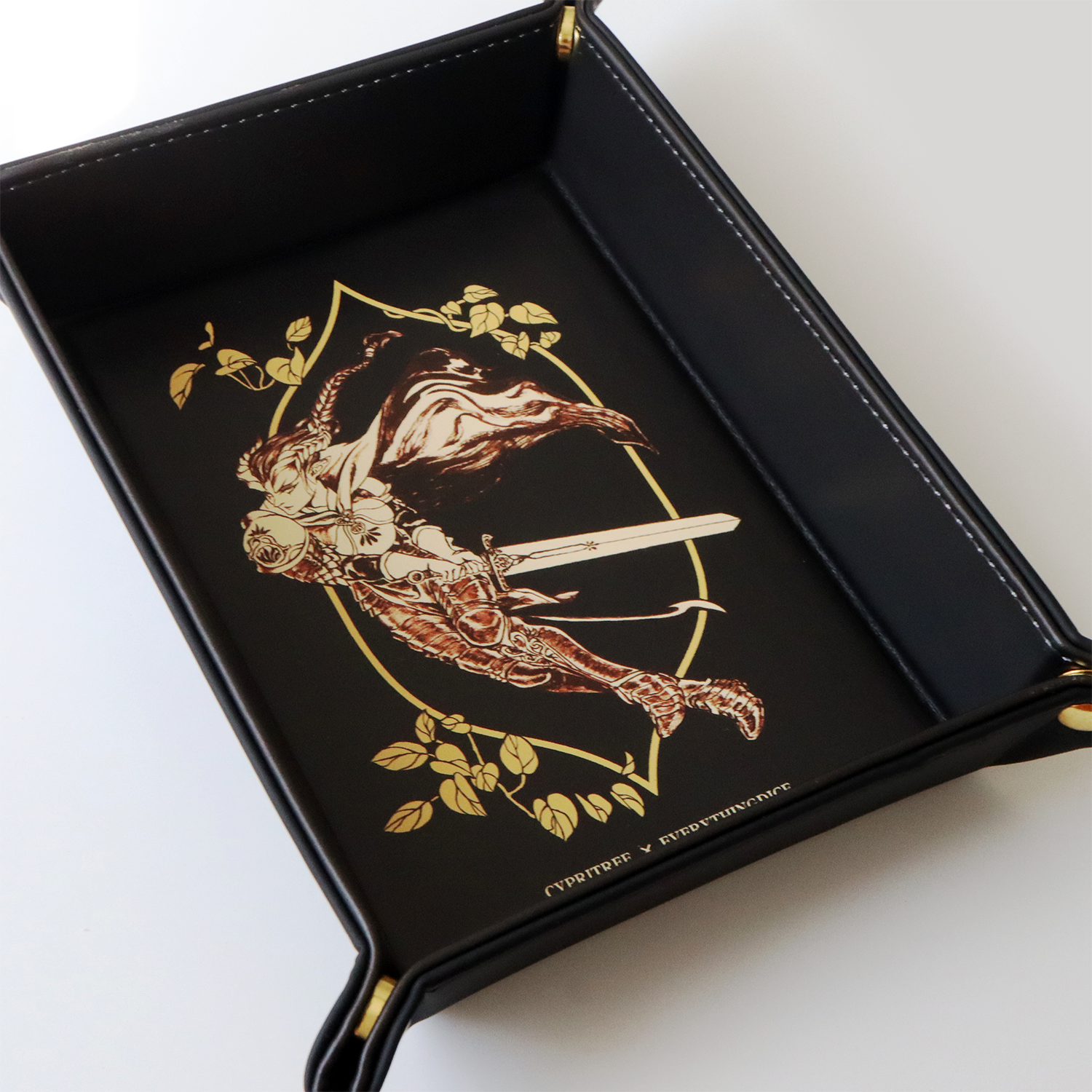 Roll in style with this regal PU vegan leather dice tray custom designed by Everything Dice! This design features artwork by the incredible @Cypritree in collaboration with Everything Dice!