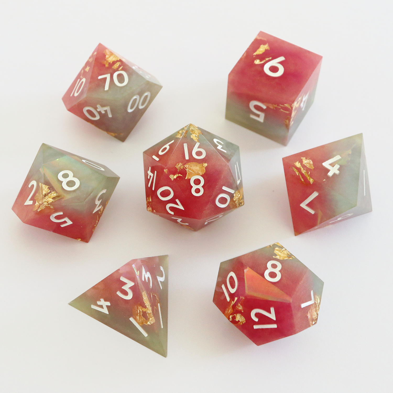 All sets sold by Everything Dice are handmade by our team of skilled resin artists, and quality-inspected to be visually perfect and suitable for casual play. Because of the handmade nature of our dice, each set will vary slightly in color proportions.