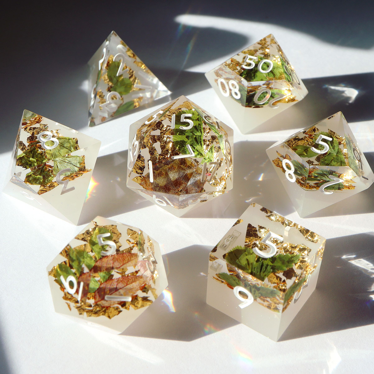 All sets sold by Everything Dice are handmade by our team of skilled resin artists, and quality-inspected to be visually perfect and suitable for casual play. Because of the handmade nature of our dice, each set will vary slightly in color proportions and copper foil placement.