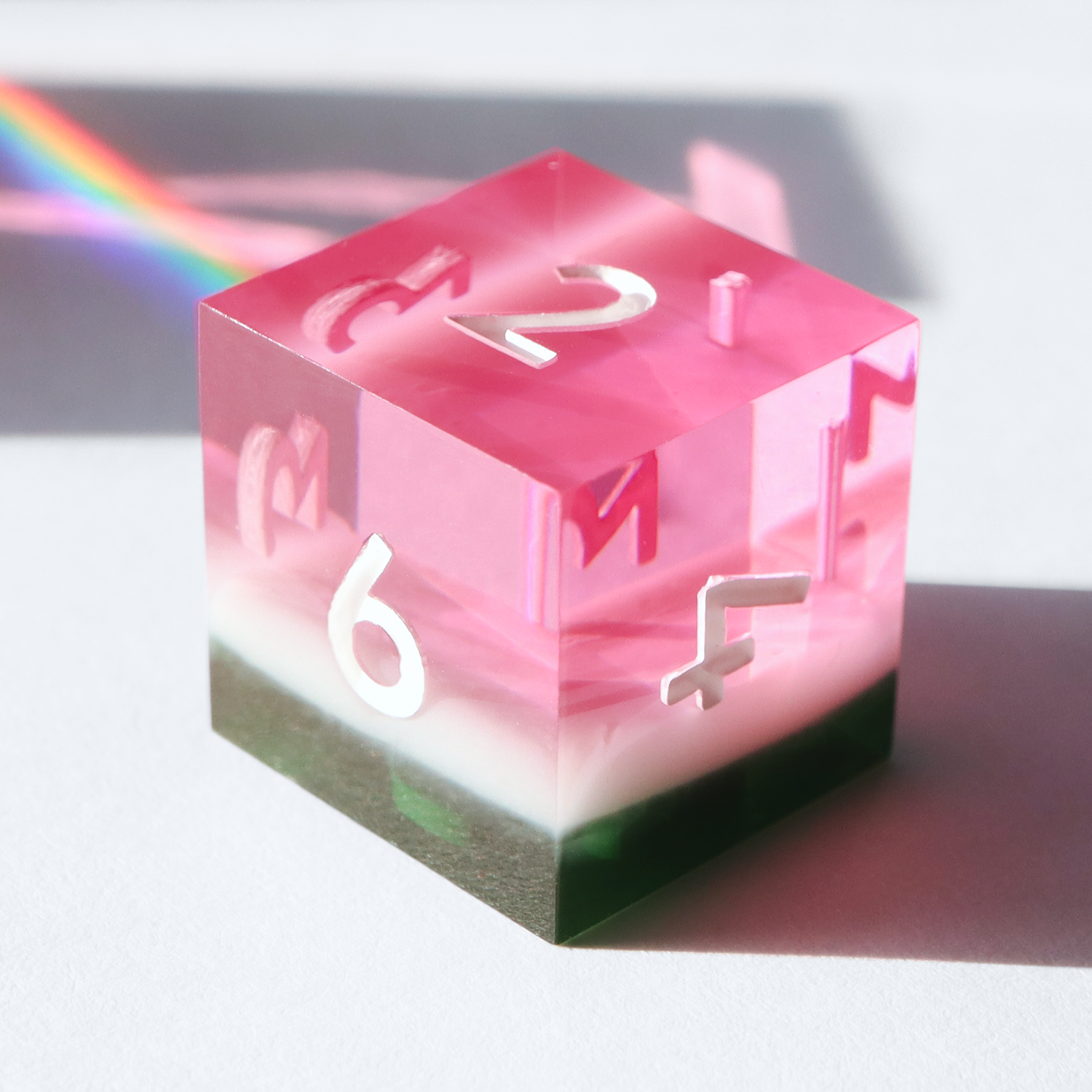 All sets sold by Everything Dice are handmade by our team of skilled resin artists, and quality-inspected to be visually perfect and suitable for casual play. Because of the handmade nature of our dice, each set will vary slightly in inclusion placement.