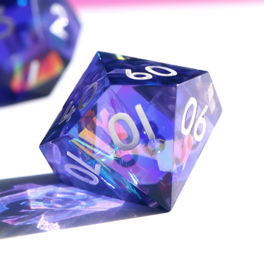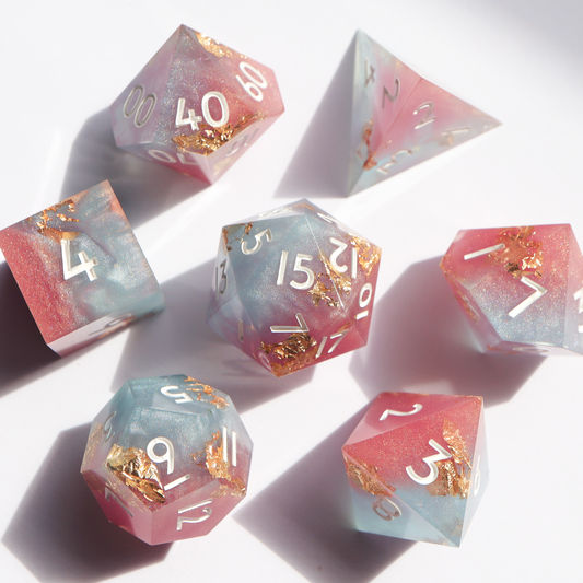 Fey Illuminations - hand-painted & handmade sharp edge 7 piece dice set