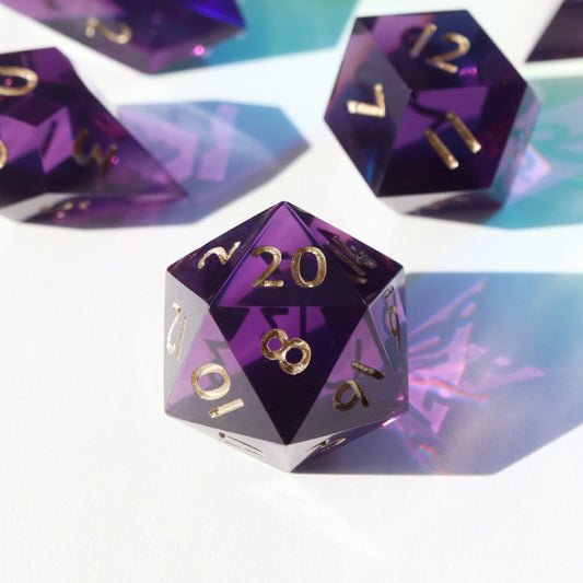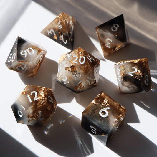 Wallflower - hand-painted & handmade sharp edge 7 piece dice set