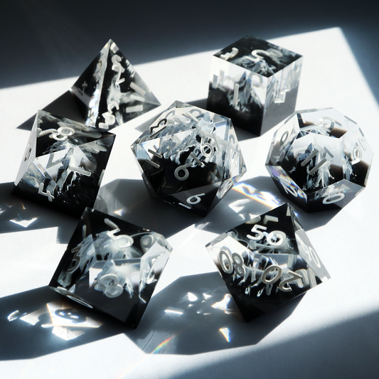 LIMITED RUN - Neon Abyss - handmade sharp edge 7 piece dice set