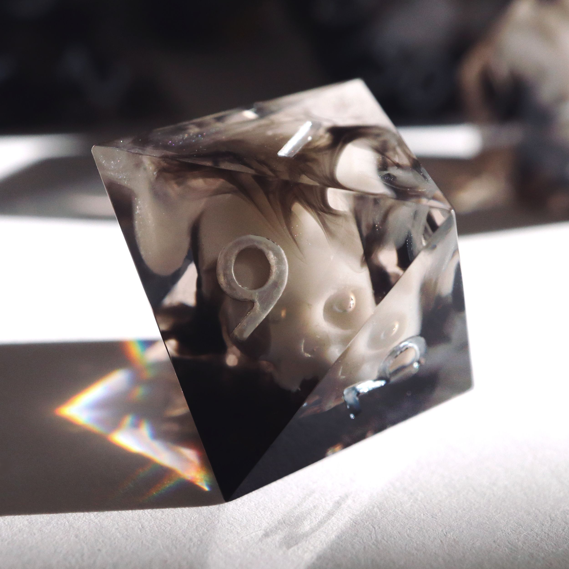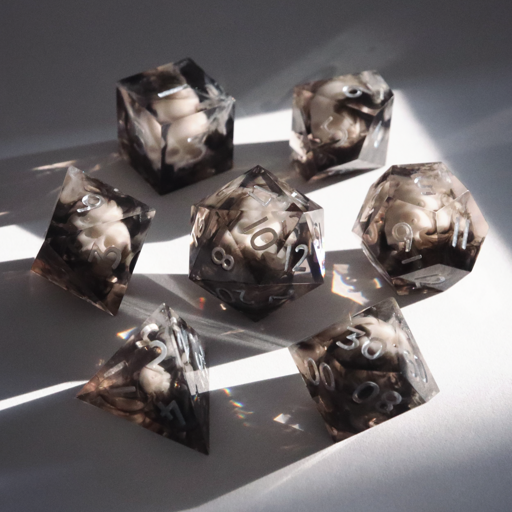 All sets sold by Everything Dice are handmade by our team of skilled resin artists, and quality-inspected to be visually perfect and suitable for casual play. Because of the handmade nature of our dice, each set will vary slightly in inclusion placement and gradient ratios.
