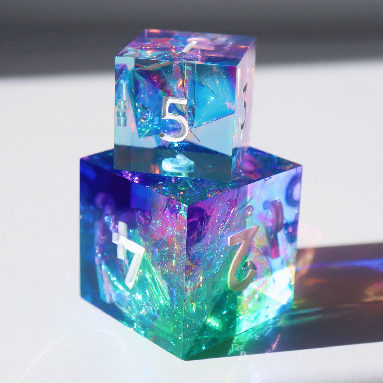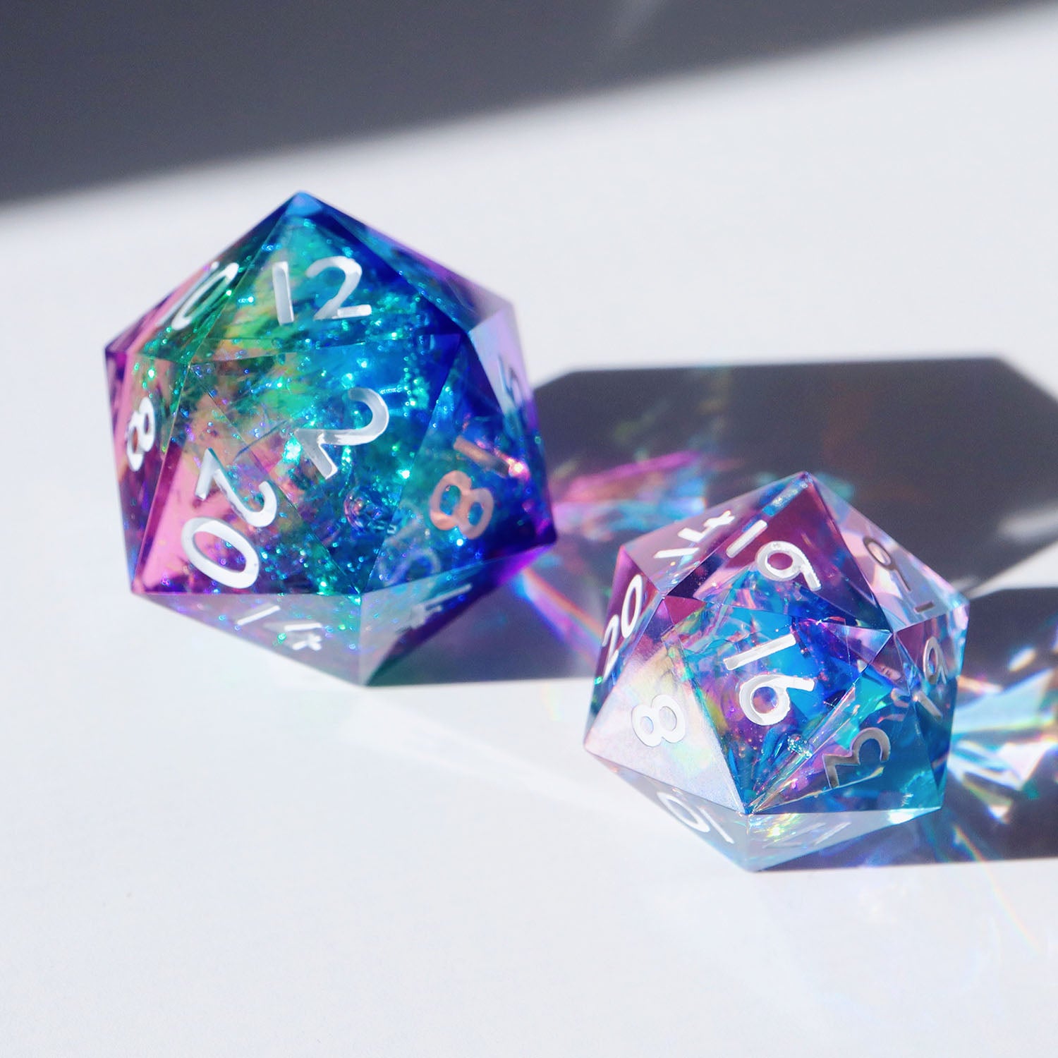 All sets sold by Everything Dice are handmade by our team of skilled resin artists, and quality-inspected to be visually perfect and suitable for casual play. Because of the handmade nature of our dice, each set will vary slightly in color proportions and inclusion placement.