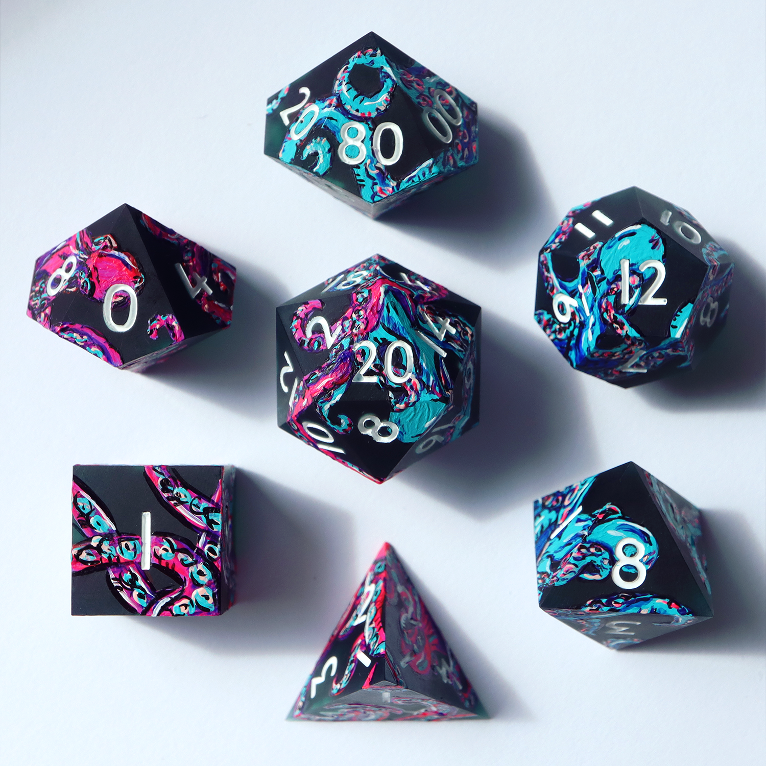 LIMITED RUN - Neon Abyss - handmade sharp edge 7 piece dice set