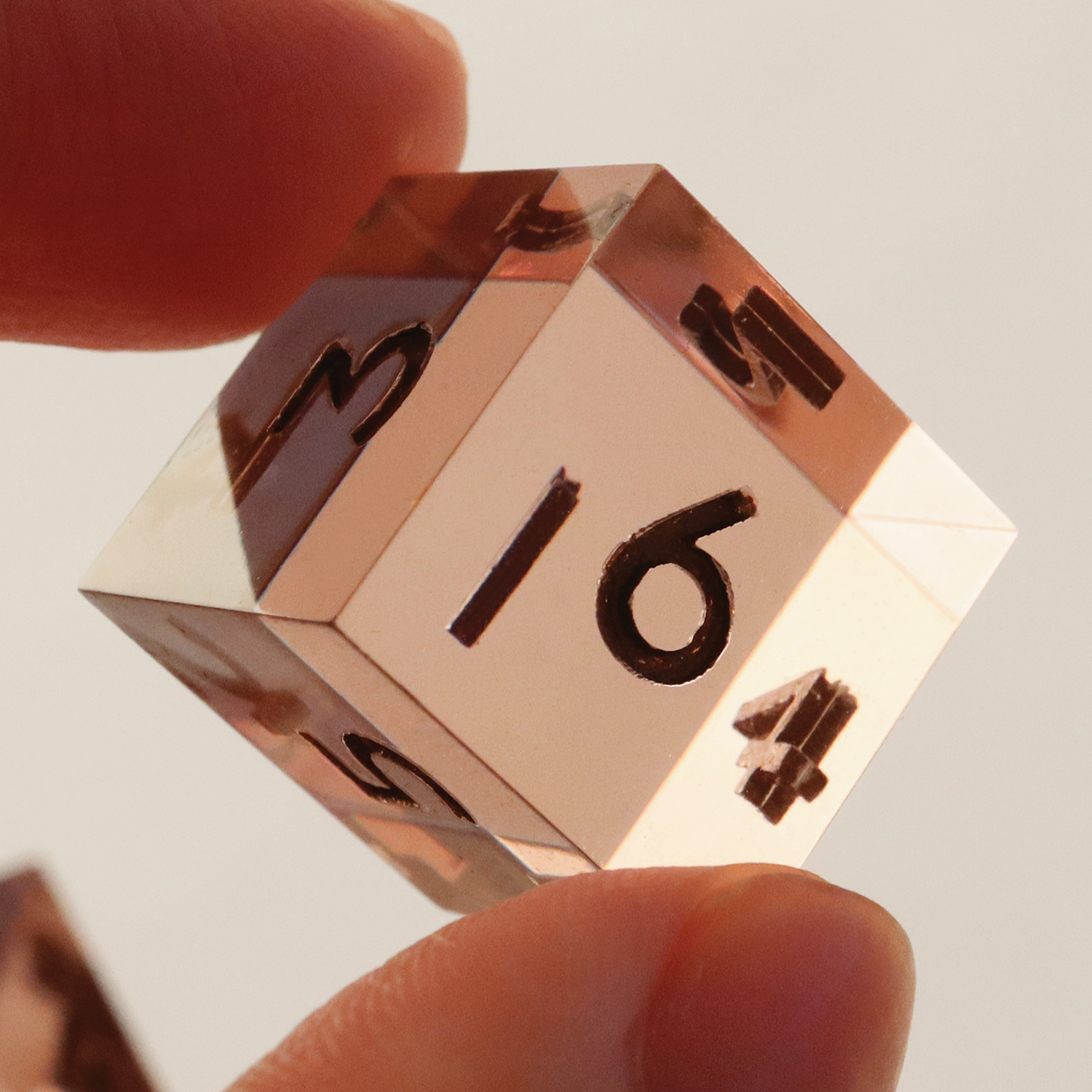 All sets sold by Everything Dice are handmade by our team of skilled resin artists, and quality-inspected to be visually perfect and suitable for casual play. Because of the handmade nature of our dice, each set will vary slightly in color proportions and inclusion placement.