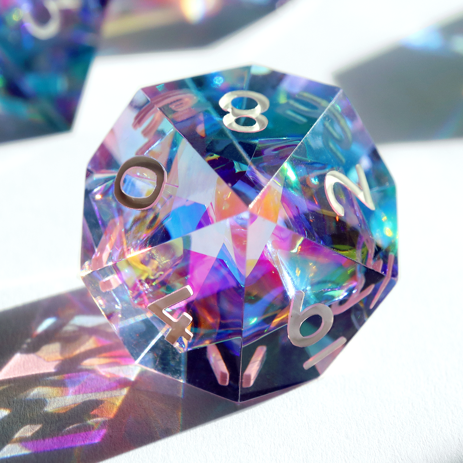 All sets sold by Everything Dice are handmade by our team of skilled resin artists, and quality-inspected to be visually perfect and suitable for casual play. Because of the handmade nature of our dice, each set will vary slightly in color proportions and inclusion placement.